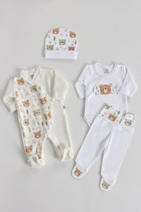 Set 4 pezzi in cotone con stampa orsetto - 1 mese