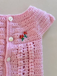 Cardigan per neonata in 100% lana - maniche corte, fatto a mano