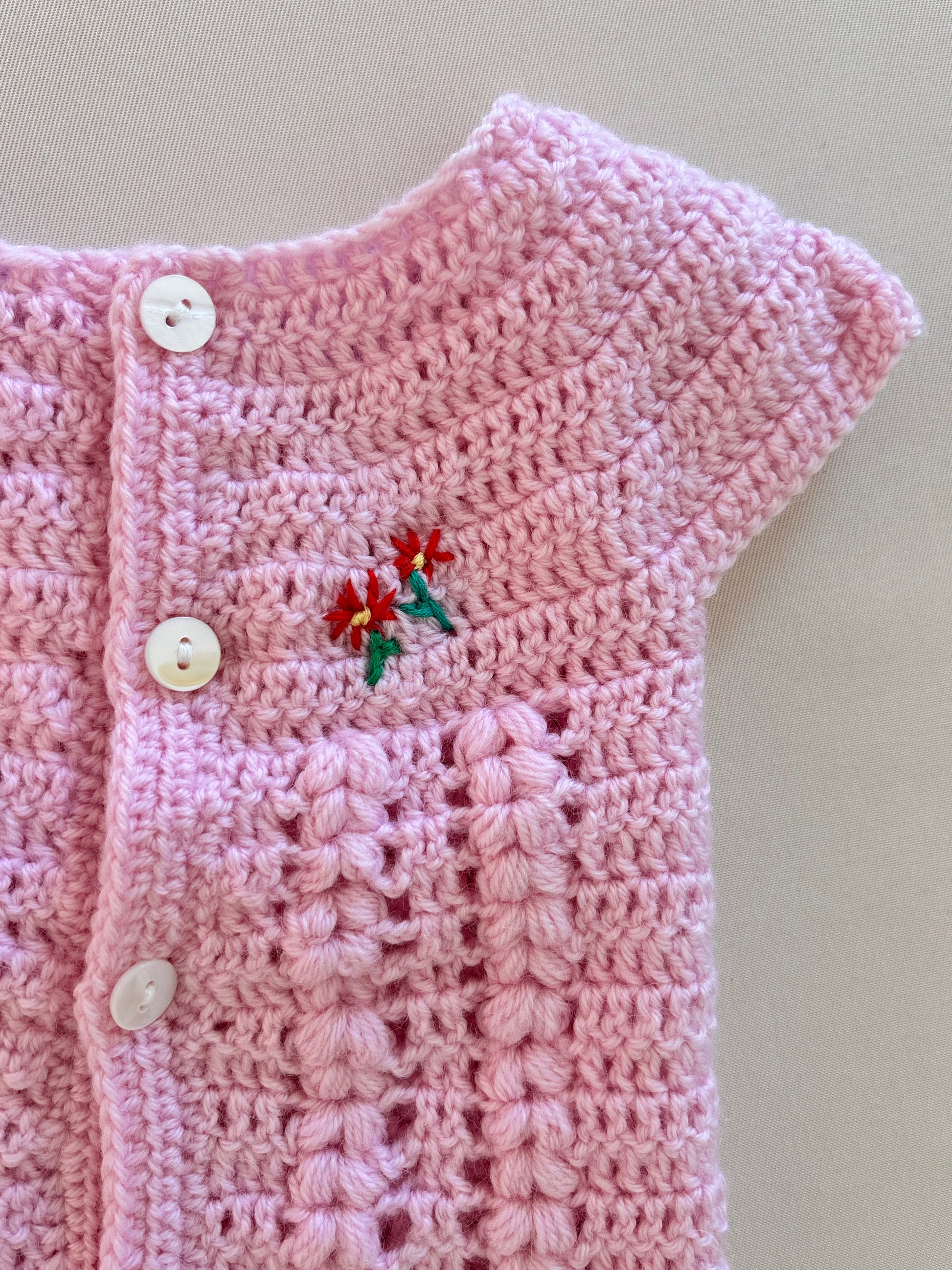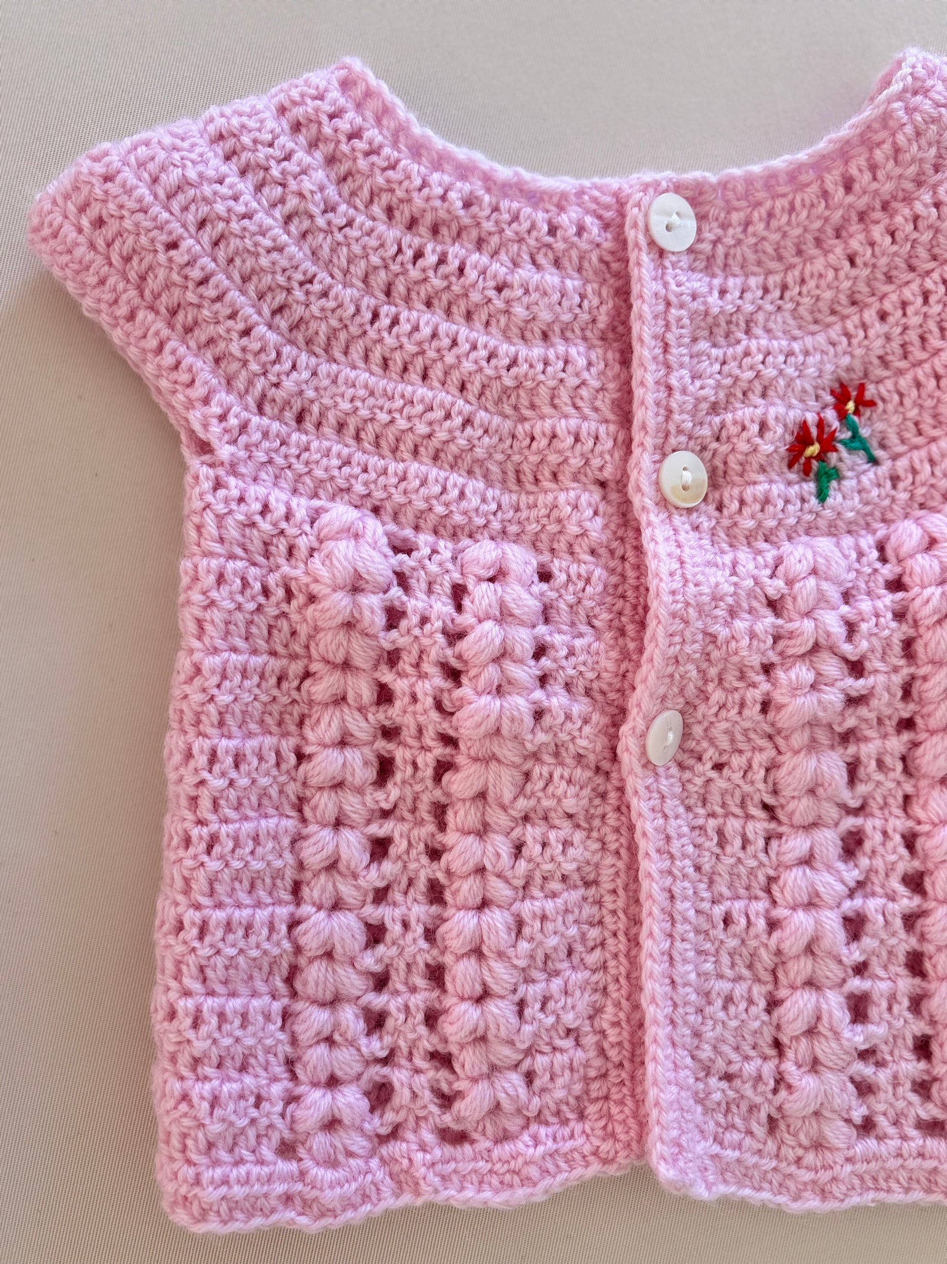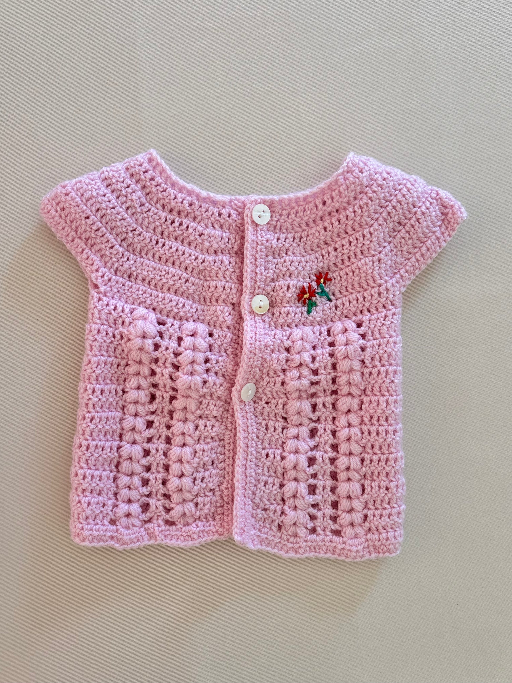 Cardigan per Neonata in 100% Lana - Maniche Corte, Fatto a Mano