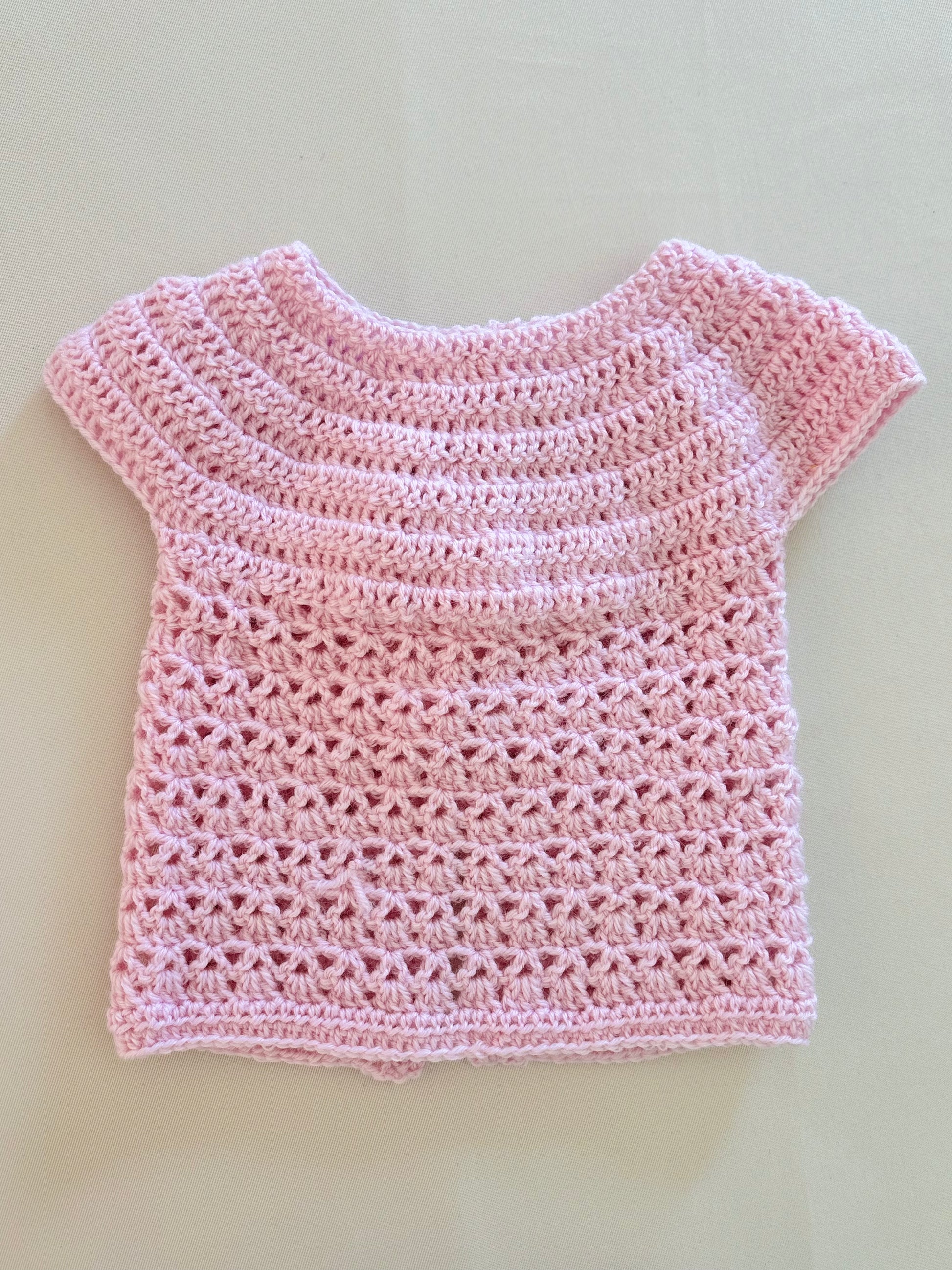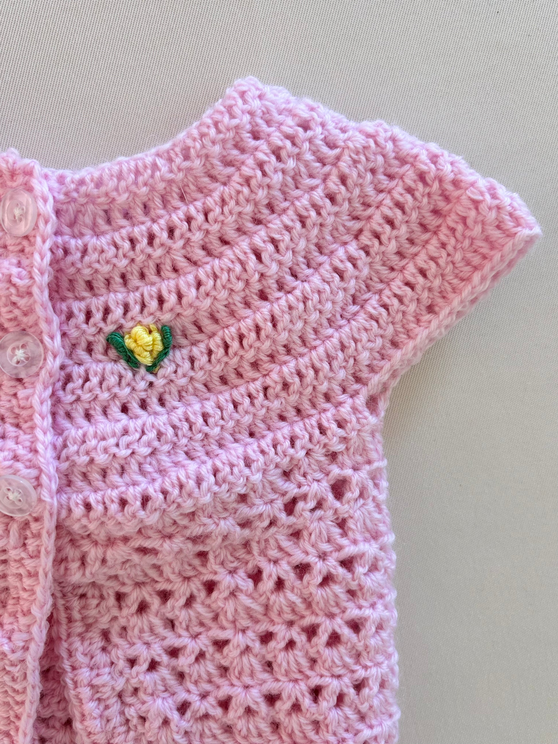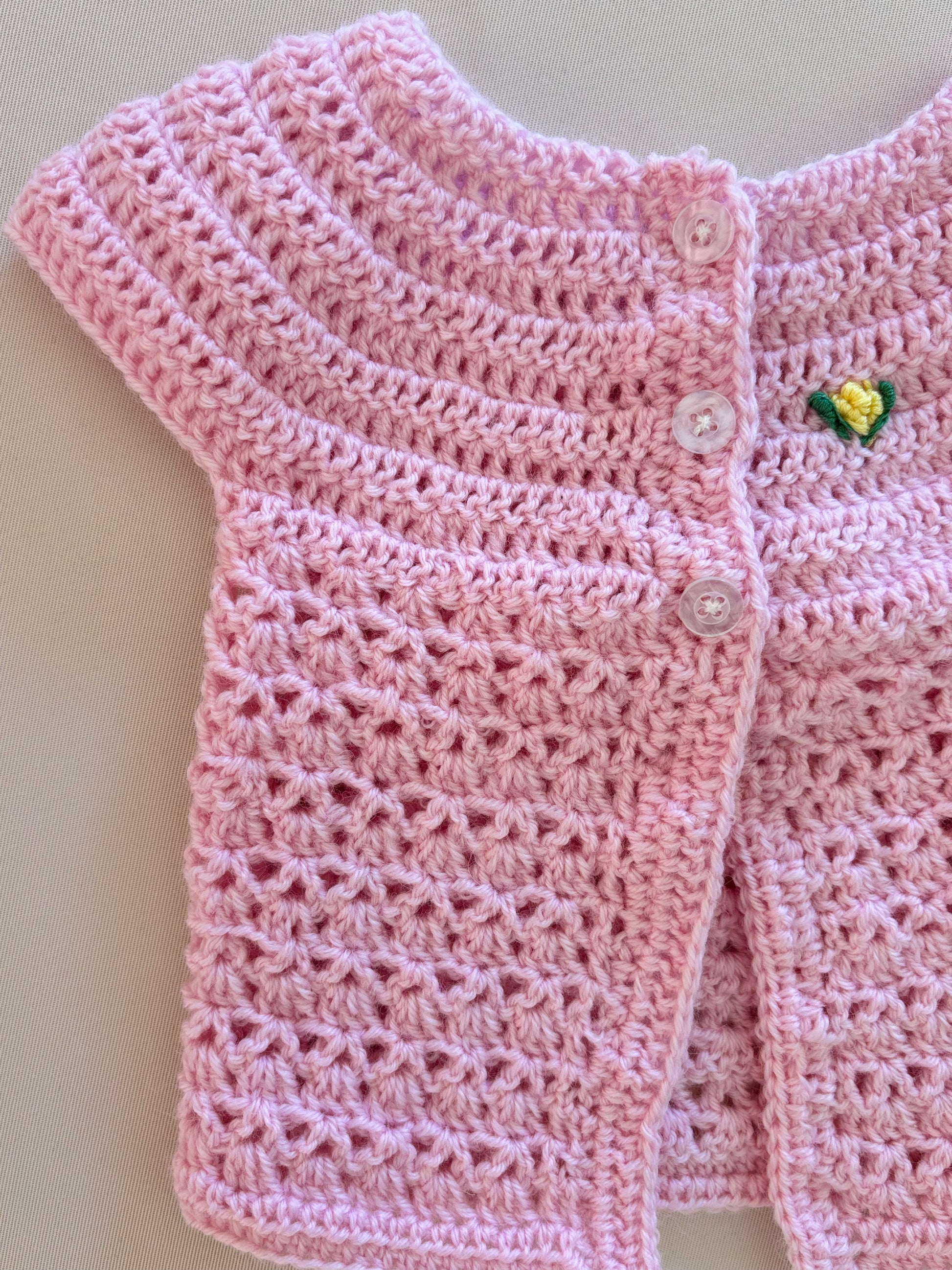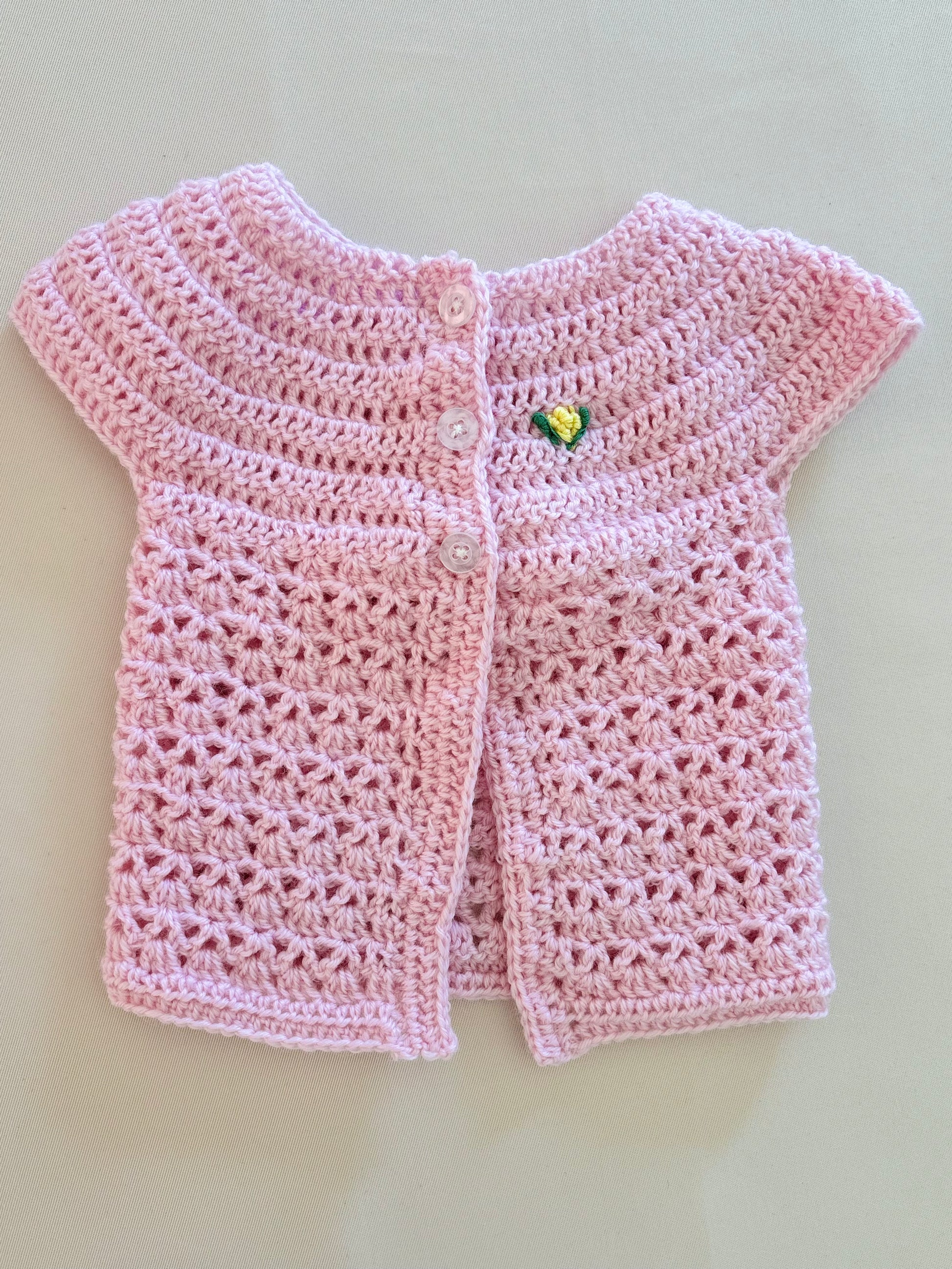 Cardigan per Neonata in 100% Lana - Maniche Corte, Fatto a Mano