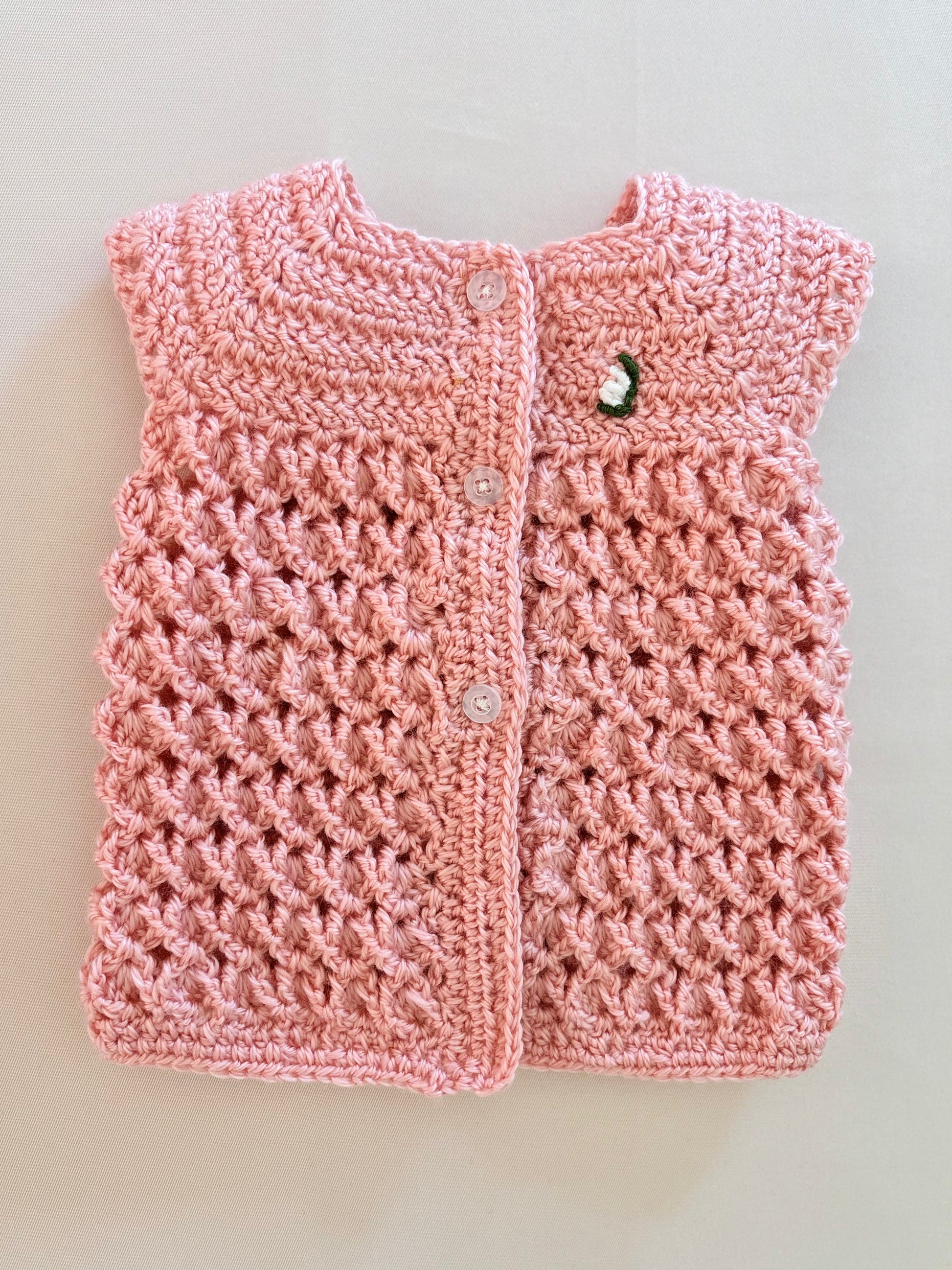 Cardigan per Neonata in Lana 100% - Senza Maniche, Realizzato a Mano