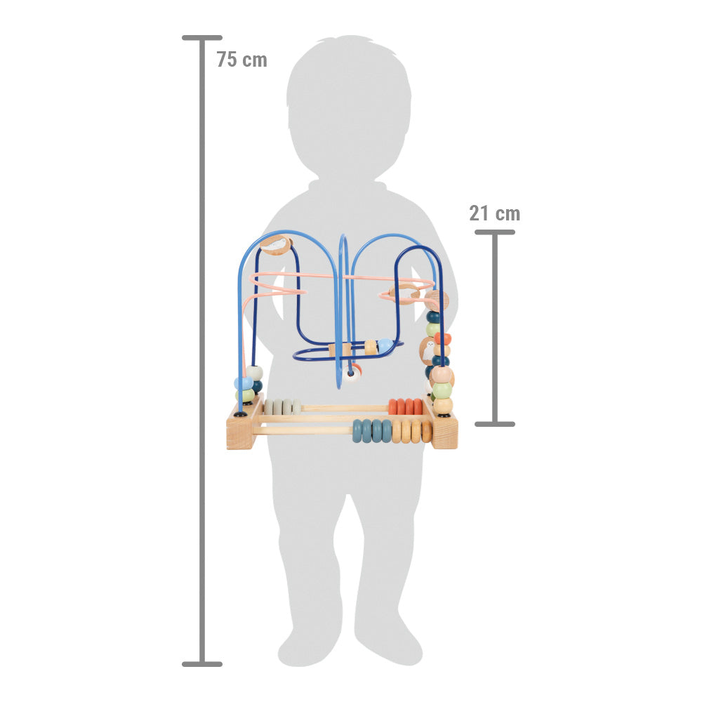 Esplora il magico mondo artico con questo giocattolo di motricità in legno certificato FSC® 100%, progettato per offrire ore di gioco educativo e divertente. Le palline di legno e i tre simpatici personaggi - l'orso polare, la foca e il gufo delle nevi - scorrono lungo tre colorate aste di metallo intrecciate, aiutando i bambini a sviluppare la motricità fine e la coordinazione occhio-mano in modo divertente.