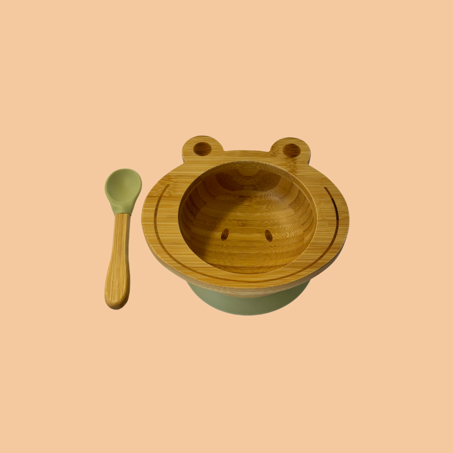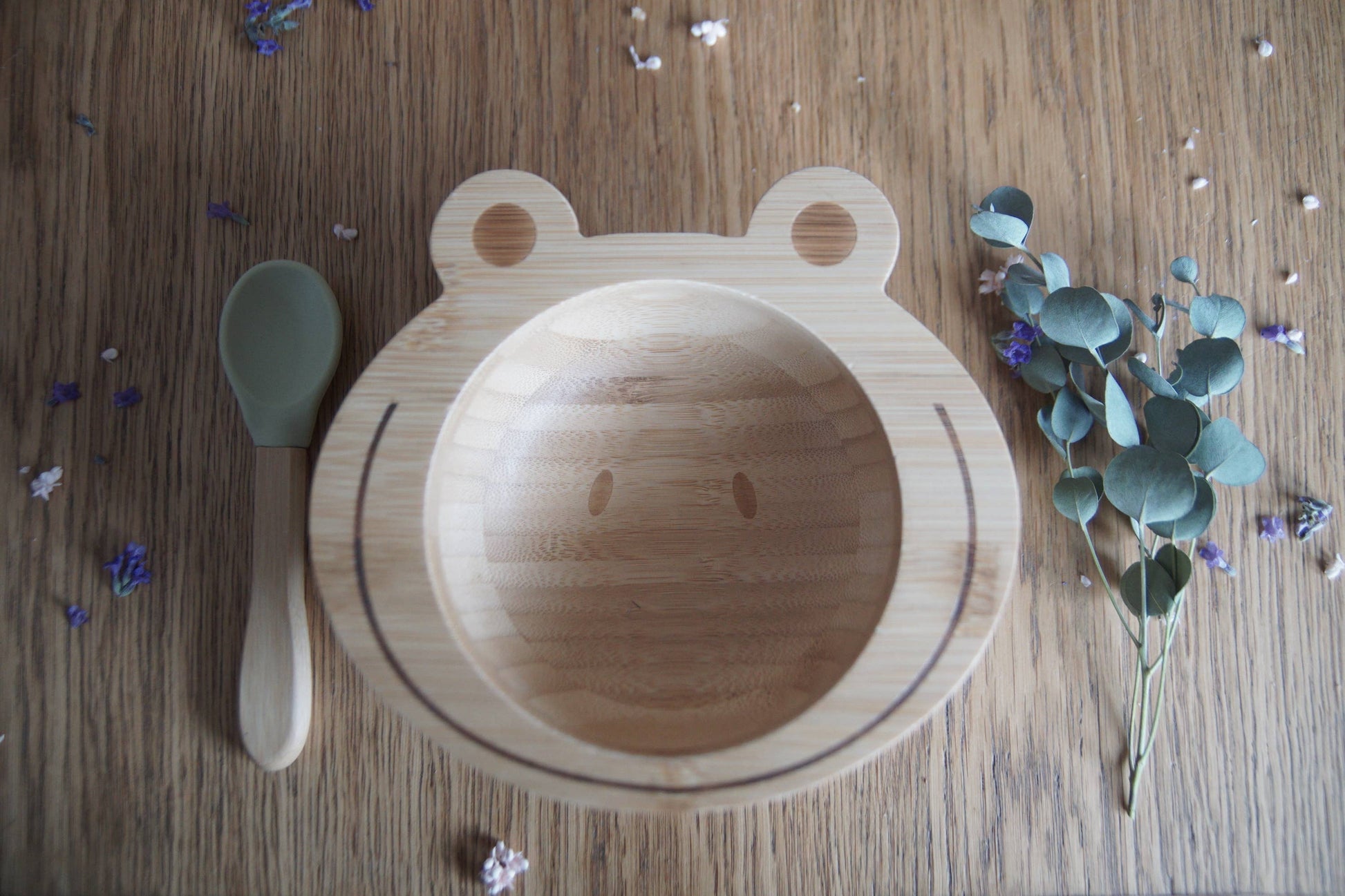 Set da pranzo per neonati in bambù e silicone a forma di rana (ciotola+cucchiaio)