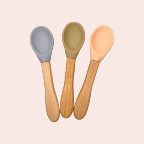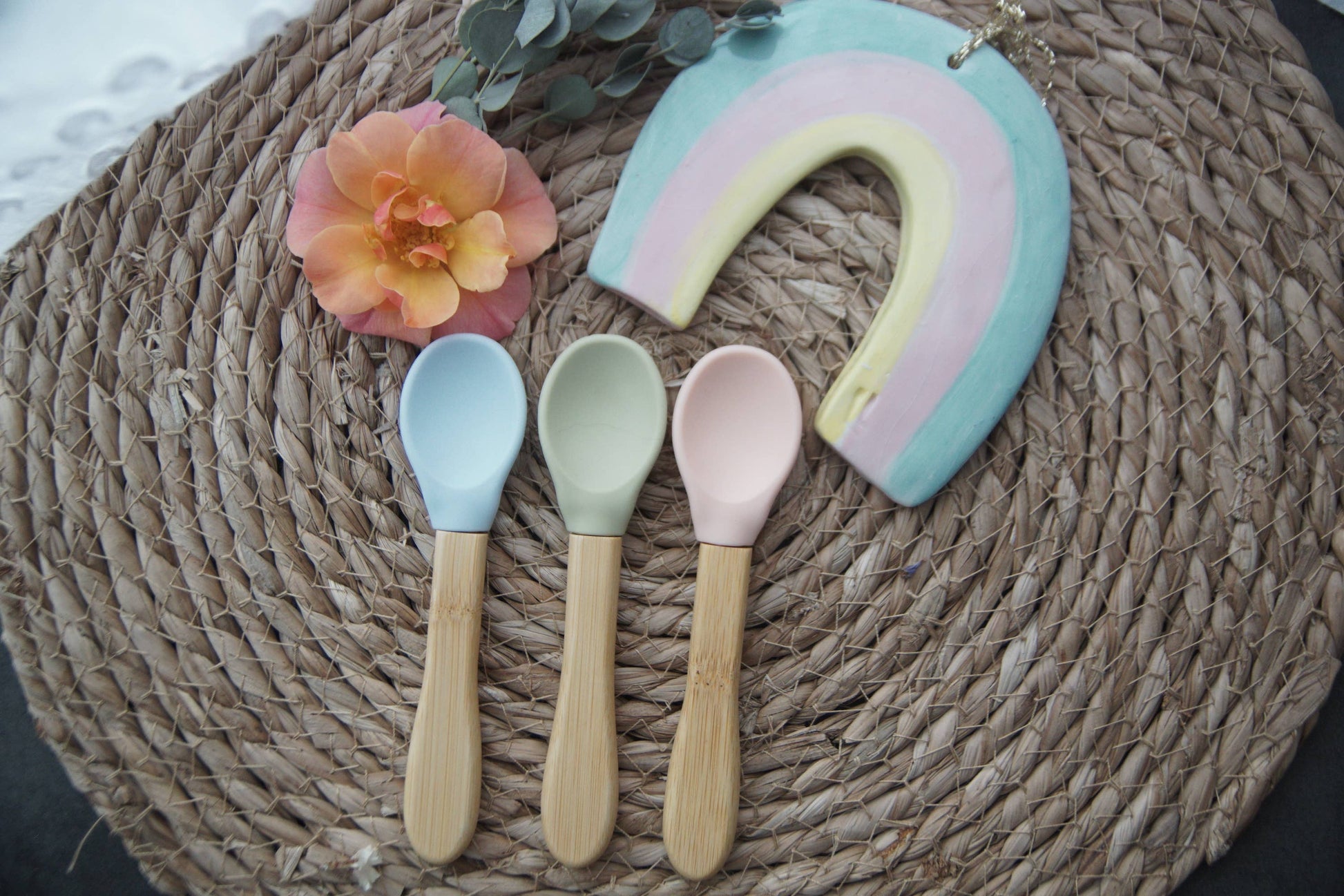 Set di 3 Cucchiai in Bambù e Silicone per Bambini - Comodità e Natura in Ogni Boccone